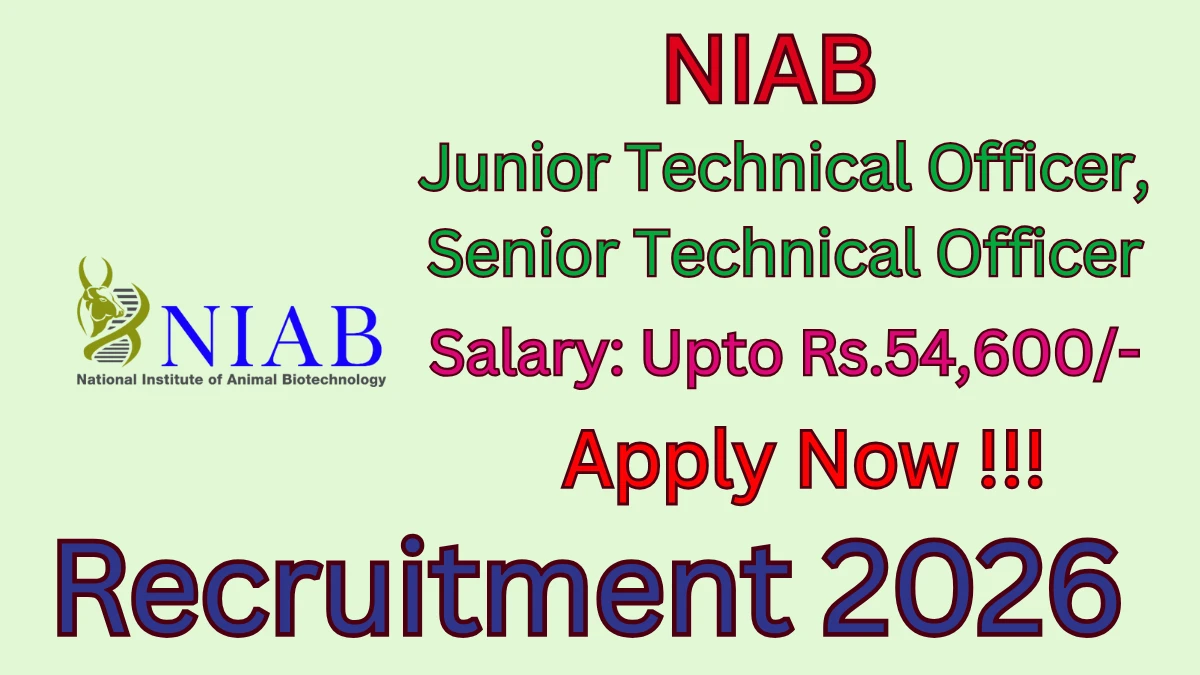 National Institute of Animal Biotechnology (NIAB) has released an official notification for the recruitment of 13 Junior Technical Officer, Senior Technical Officer Posts. Interested and eligible candidates can apply Online through the official NIAB website. The last date to submit the application form is 17-02-2026. In this article, you’ll find the NIAB Junior Technical Officer, Senior Technical Officer Posts recruitment details, including eligibility criteria, age limit, salary structure, selection process, application steps, and direct links to the official notification and Online application form.