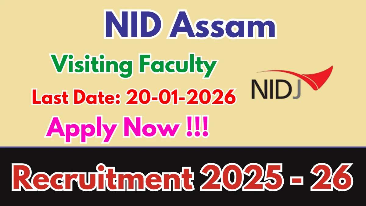 National Institute of Design Assam (NID Assam) has released an official notification for the recruitment of Visiting Faculty Posts. Interested and eligible candidates can apply Online through the official NID Assam website. The last date to submit the application form is 20-01-2026. In this article, you’ll find the NID Assam Visiting Faculty Posts recruitment details, including eligibility criteria, age limit, salary structure, selection process, application steps, and direct links to the official notification and Online application form.