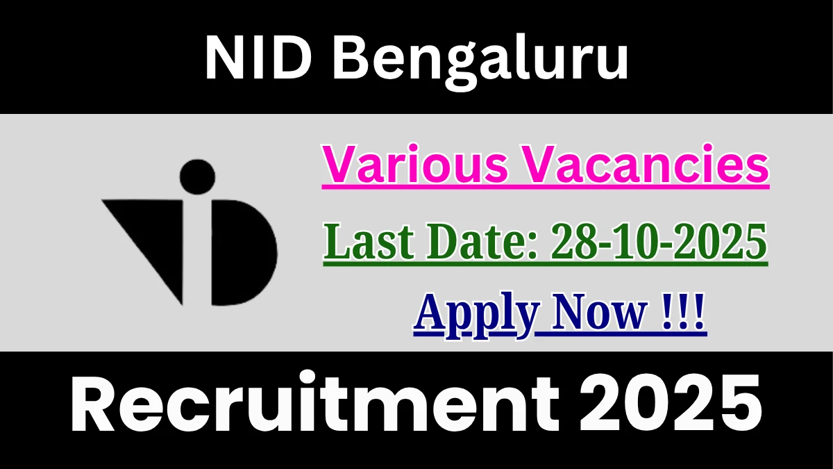National Institute of Design Bengaluru (NID Bengaluru) has released an official notification for the recruitment of 04 Senior Assistant, IT Lab Assistant and More Posts. Interested and eligible candidates can apply Offline through the official NID Bengaluru website. The last date to submit the application form is 28-10-2025. In this article, you’ll find the NID Bengaluru Senior Assistant, IT Lab Assistant and More Posts recruitment details, including eligibility criteria, age limit, salary structure, selection process, application steps, and direct links to the official notification and Offline application form.