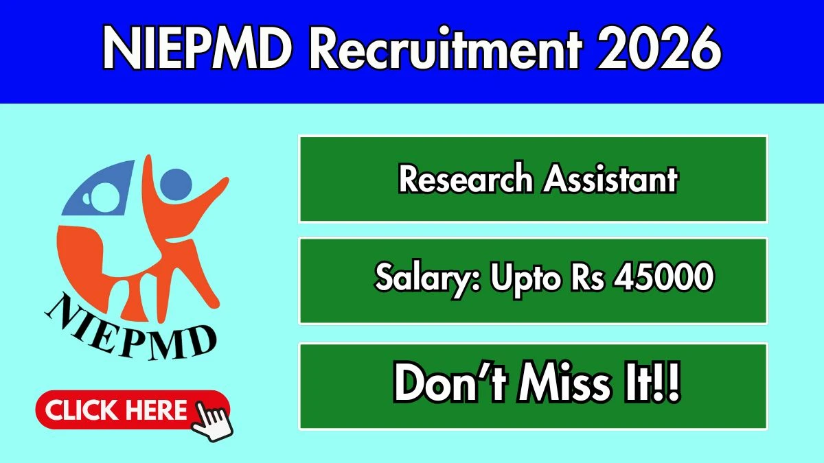 National Institute for Empowerment of Persons with Multiple Disabilities (NIEPMD) Recruitment 2026 for 01 posts of Research Assistant. Candidates with B.Ed, M.Ed Can attend the walkin. The Walk-in interview ends on 02-01-2026. For detailed information please visit NIEPMD official website, niepmd.nic.in.