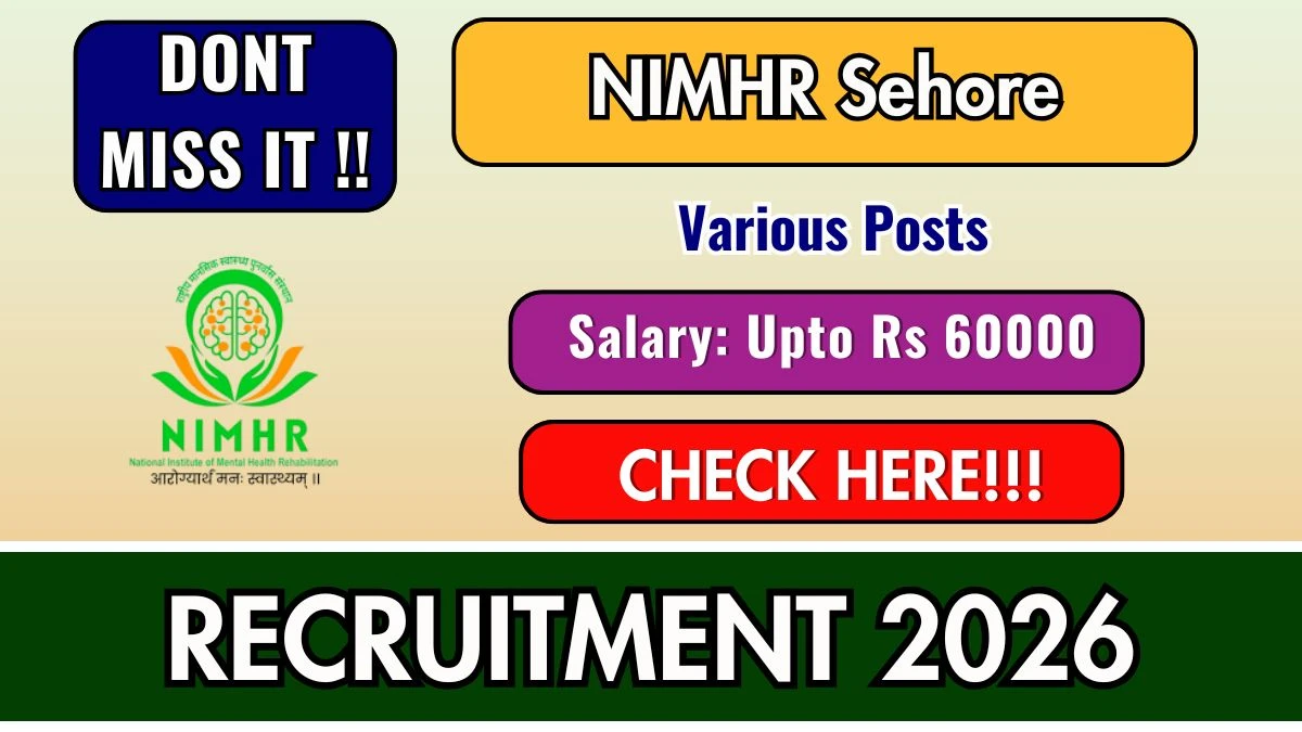 National Institute of Mental Health Rehabilitation Sehore (NIMHR Sehore) has released an official notification for the recruitment of 06 Supervisor, Lecturer and Other Posts. Interested and eligible candidates can apply Offline through the official NIMHR Sehore website. The last date to submit the application form is 01-03-2026. In this article, you’ll find the NIMHR Sehore Supervisor, Lecturer and Other Posts recruitment details, including eligibility criteria, age limit, salary structure, selection process, application steps, and direct links to the official notification and Offline application form.