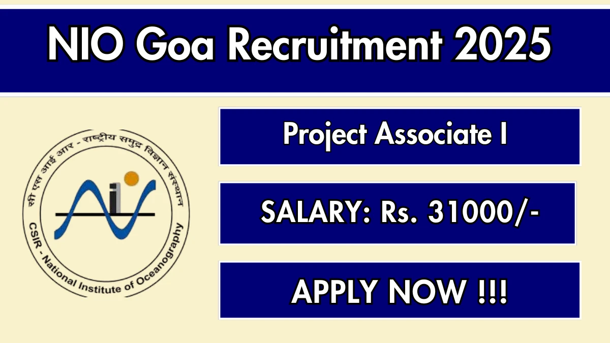 National Institute of Oceanography Goa (NIO Goa) has released an official notification for the recruitment of 01 Project Associate I Posts. Interested and eligible candidates can apply Online through the official NIO Goa website. The last date to submit the application form is 26-10-2025. In this article, you’ll find the NIO Goa Project Associate I Posts recruitment details, including eligibility criteria, age limit, salary structure, selection process, application steps, and direct links to the official notification and Online application form.