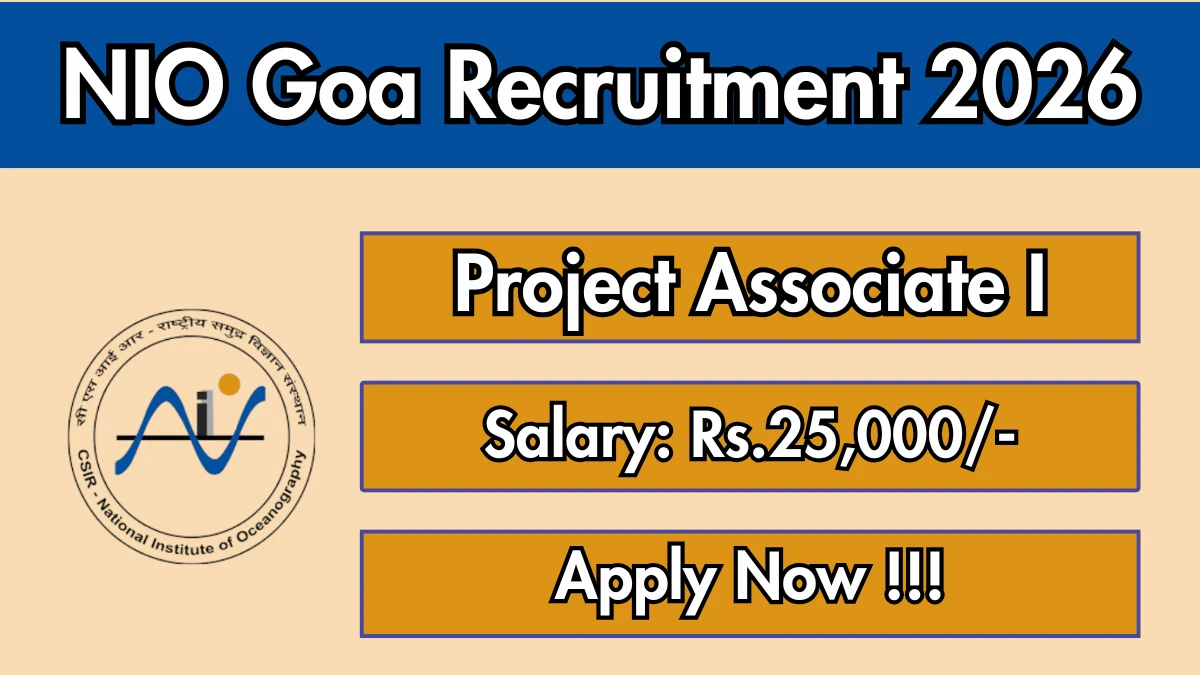 National Institute of Oceanography Goa (NIO Goa) has released an official notification for the recruitment of 03 Project Associate I Posts. Interested and eligible candidates can apply Online through the official NIO Goa website. The last date to submit the application form is 25-01-2026. In this article, you’ll find the NIO Goa Project Associate I Posts recruitment details, including eligibility criteria, age limit, salary structure, selection process, application steps, and direct links to the official notification and Online application form.