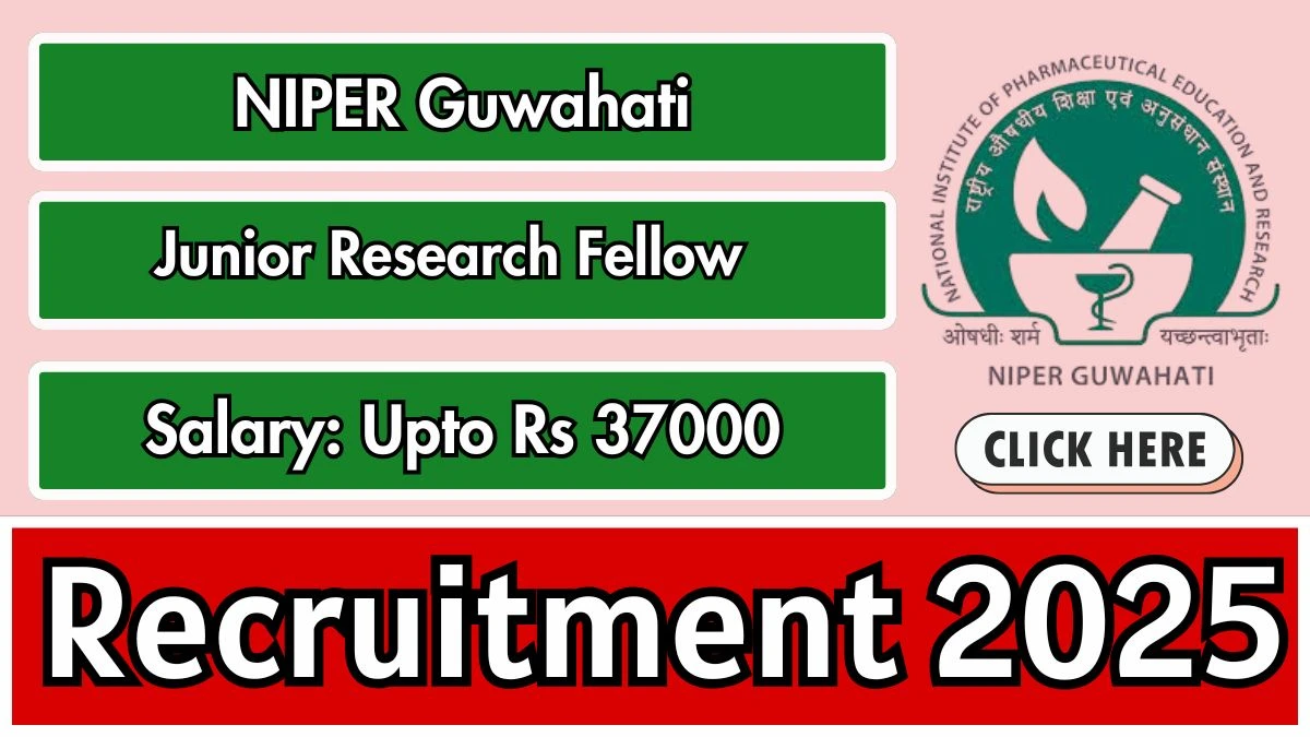 National Institute of Pharmaceutical Education and Research Guwahati (NIPER Guwahati) has released an official notification for the recruitment of 01 Junior Research Fellow Posts. Interested and eligible candidates can apply Online through the official NIPER Guwahati website. The last date to submit the application form is 12-01-2026. In this article, you’ll find the NIPER Guwahati Junior Research Fellow Posts recruitment details, including eligibility criteria, age limit, salary structure, selection process, application steps, and direct links to the official notification and Online application form.