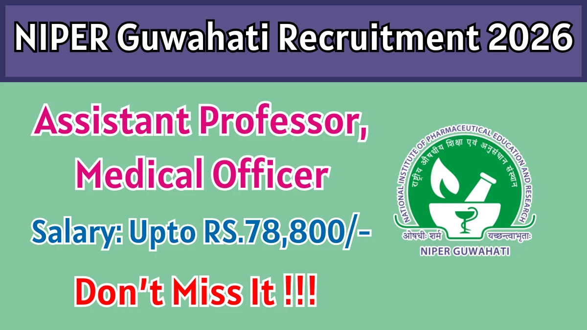 National Institute of Pharmaceutical Education and Research Guwahati (NIPER Guwahati) has released an official notification for the recruitment of 03 Assistant Professor, Medical Officer Posts. Interested and eligible candidates can apply Online through the official NIPER Guwahati website. The last date to submit the application form is 28-02-2026. In this article, you’ll find the NIPER Guwahati Assistant Professor, Medical Officer Posts recruitment details, including eligibility criteria, age limit, salary structure, selection process, application steps, and direct links to the official notification and Online application form.