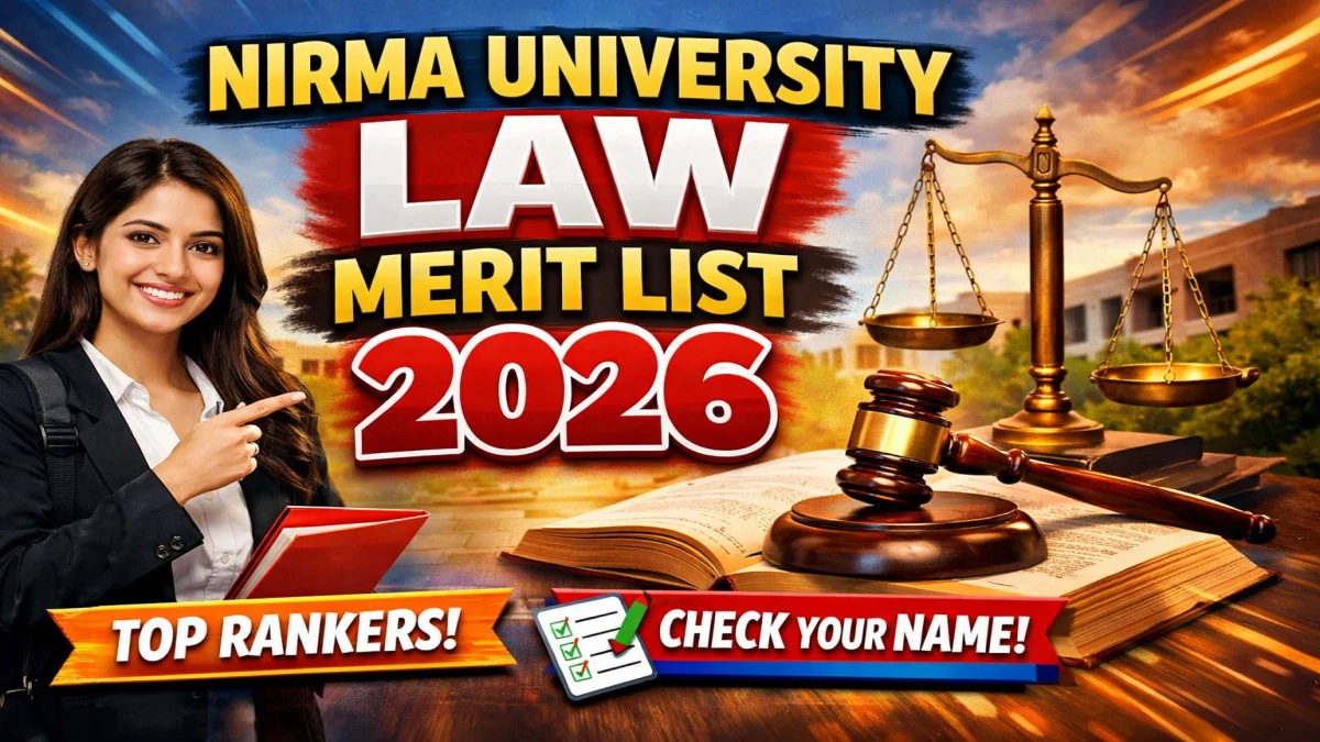 The Nirma University Law Merit List 2026 has been officially released for UG law admissions. Candidates who applied for B.A. LL.B. (Hons.), B.Com. LL.B. (Hons.), and B.B.A. LL.B. (Hons.) can now check their selection status online through the official admission portal.