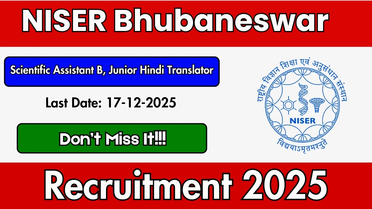 National Institute of Science Education and Research Bhubaneswar (NISER Bhubaneswar) has released an official notification for the recruitment of 03 Scientific Assistant B, Junior Hindi Translator Posts. Interested and eligible candidates can apply Online through the official NISER Bhubaneswar website. The last date to submit the application form is 17-12-2025. In this article, you’ll find the NISER Bhubaneswar Scientific Assistant B, Junior Hindi Translator Posts recruitment details, including eligibility criteria, age limit, salary structure, selection process, application steps, and direct links to the official notification and Online application form.