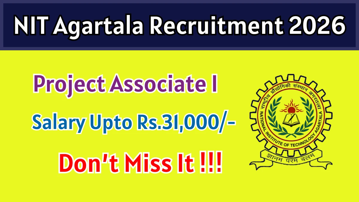 National Institute of Technology Agartala (NIT Agartala) Recruitment 2026 for posts of Project Associate I. Candidates with B.Tech/B.E, M.Sc, MVSC Can attend the walkin. The Walk-in on 09-03-2026. For detailed information please visit NIT Agartala official website, https://nita.ac.in.