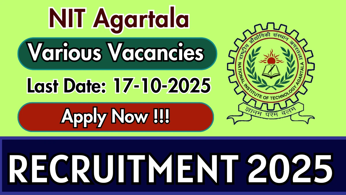 National Institute of Technology Agartala (NIT Agartala) has released an official notification for the recruitment of 03 Chief Executive Officer, Incubation Manager and More Posts. Interested and eligible candidates can apply Offline through the official NIT Agartala website. The last date to submit the application form is 17-10-2025. In this article, you’ll find the NIT Agartala Chief Executive Officer, Incubation Manager and More Posts recruitment details, including eligibility criteria, age limit, salary structure, selection process, application steps, and direct links to the official notification and Offline application form.