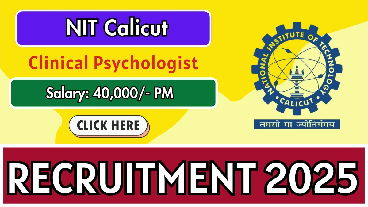 National Institute of Technology Calicut (NIT Calicut) has released an official notification for the recruitment of 01 Clinical Psychologist Posts. Interested and eligible candidates can apply Online through the official NIT Calicut website. The last date to submit the application form is 04-11-2025. In this article, you’ll find the NIT Calicut Clinical Psychologist Posts recruitment details, including eligibility criteria, age limit, salary structure, selection process, application steps, and direct links to the official notification and Online application form.