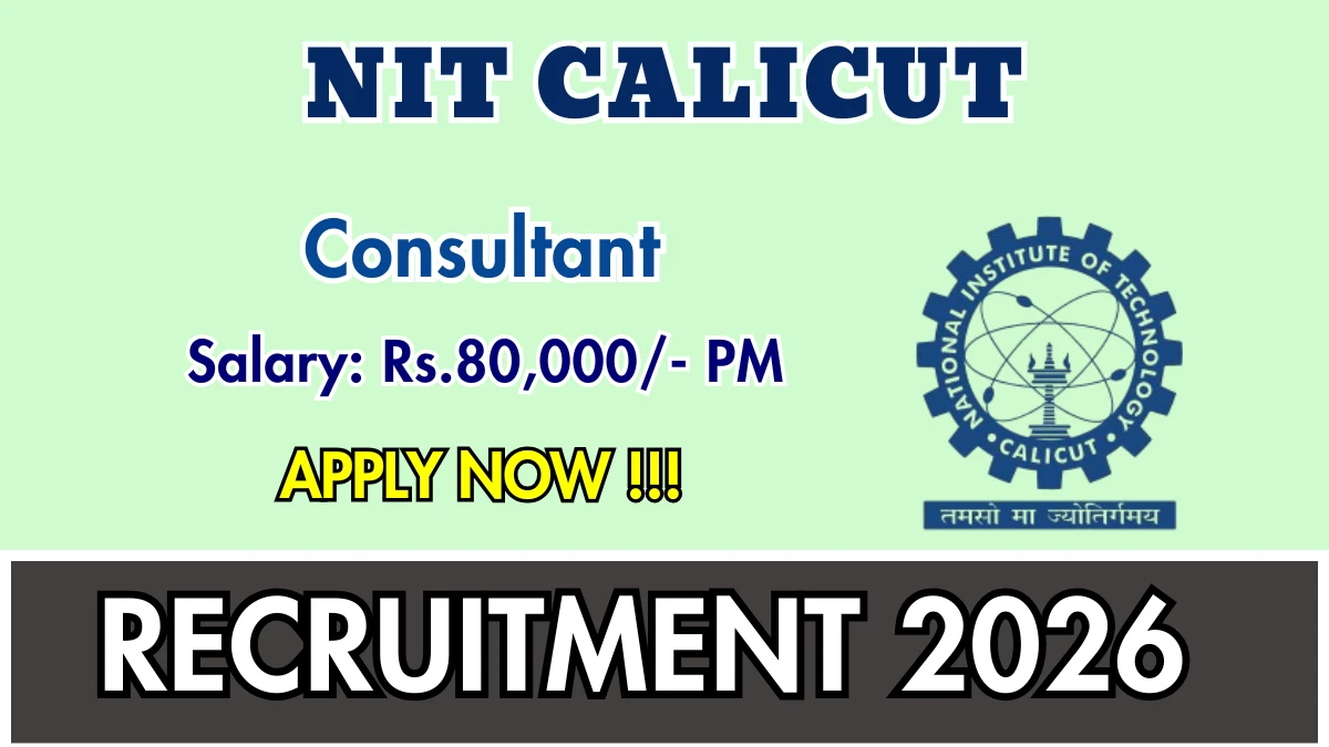 National Institute of Technology Calicut (NIT Calicut) has released an official notification for the recruitment of 1 Consultant Posts. Interested and eligible candidates can apply by sending their application via Email. The last date to send the application email is 16-03-2026.