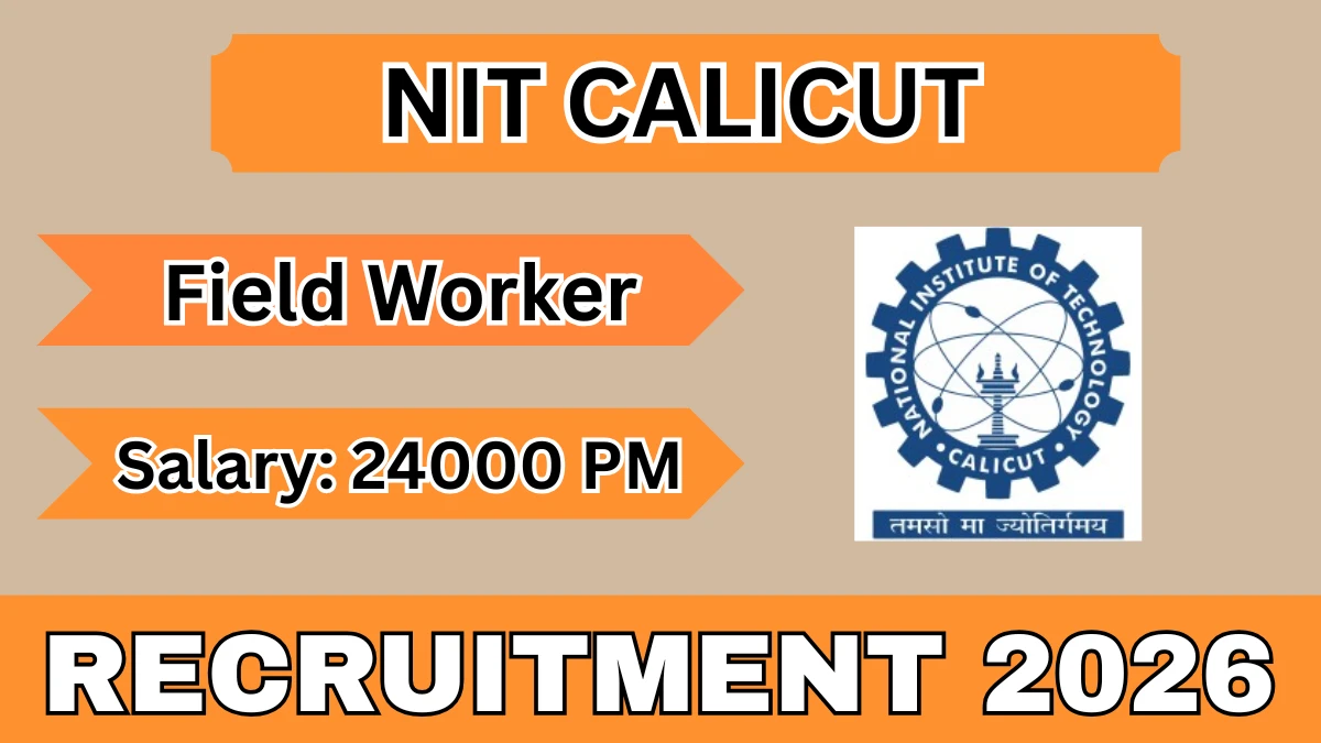 The National Institute of Technology Calicut (NIT Calicut) has released an official notification for the recruitment of 01 Field Worker Posts. Interested and eligible candidates can apply Online through the official NIT Calicut website. The last date to submit the application form is 16-01-2026. In this article, you’ll find the NIT Calicut Field Worker Posts recruitment details, including eligibility criteria, age limit, salary structure, selection process, application steps, and direct links to the official notification and Online application form.