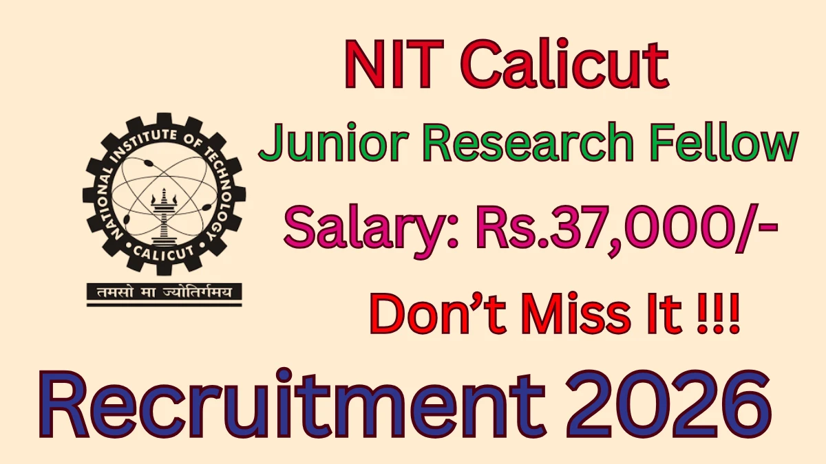 National Institute of Technology Calicut (NIT Calicut) has released an official notification for the recruitment of 01 Junior Research Fellow Posts. Interested and eligible candidates can apply Offline through the official NIT Calicut website. The last date to submit the application form is 16-02-2026. In this article, you’ll find the NIT Calicut Junior Research Fellow Posts recruitment details, including eligibility criteria, age limit, salary structure, selection process, application steps, and direct links to the official notification and Offline application form.