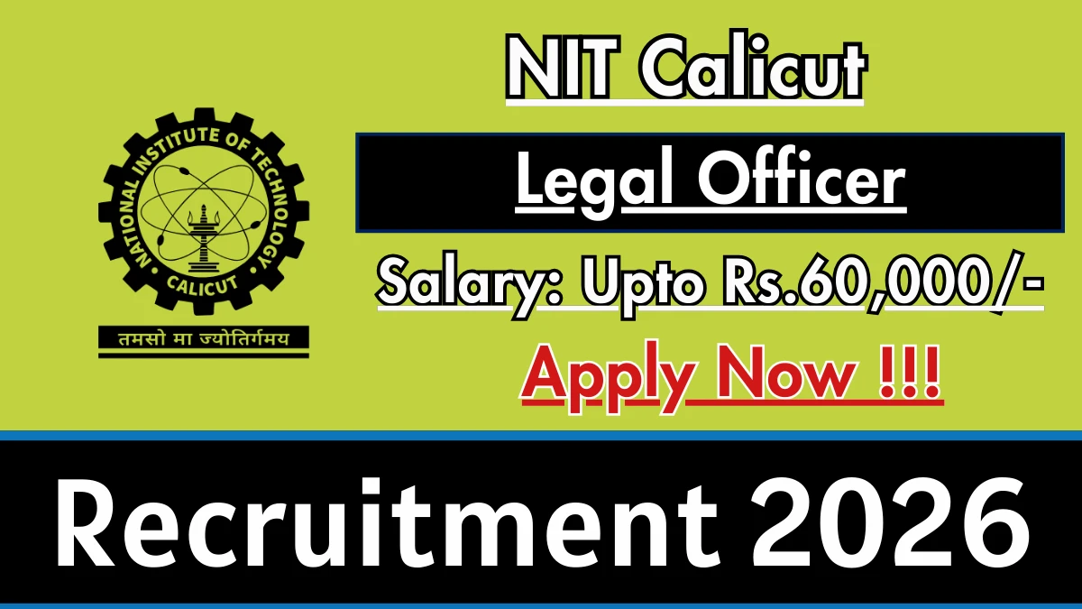 National Institute of Technology Calicut (NIT Calicut) has released an official notification for the recruitment of 01 Legal Officer Posts. Interested and eligible candidates can apply Online through the official NIT Calicut website. The last date to submit the application form is 17-02-2026. In this article, you’ll find the NIT Calicut Legal Officer Posts recruitment details, including eligibility criteria, age limit, salary structure, selection process, application steps, and direct links to the official notification and Online application form.