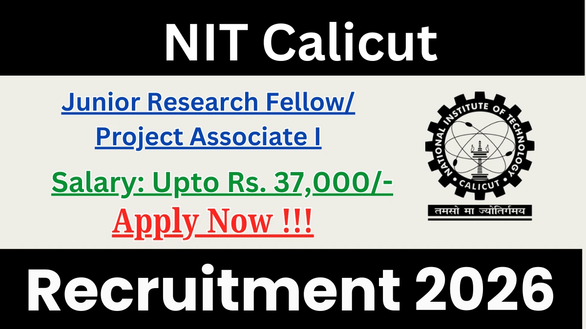 National Institute of Technology Calicut (NIT Calicut) has released an official notification for the recruitment of 0I Junior Research Fellow/ Project Associate I Posts. Interested and eligible candidates can apply Offline through the official NIT Calicut website. The last date to submit the application form is 03-02-2026. In this article, you’ll find the NIT Calicut Junior Research Fellow/ Project Associate I Posts recruitment details, including eligibility criteria, age limit, salary structure, selection process, application steps, and direct links to the official notification and Offline application form.