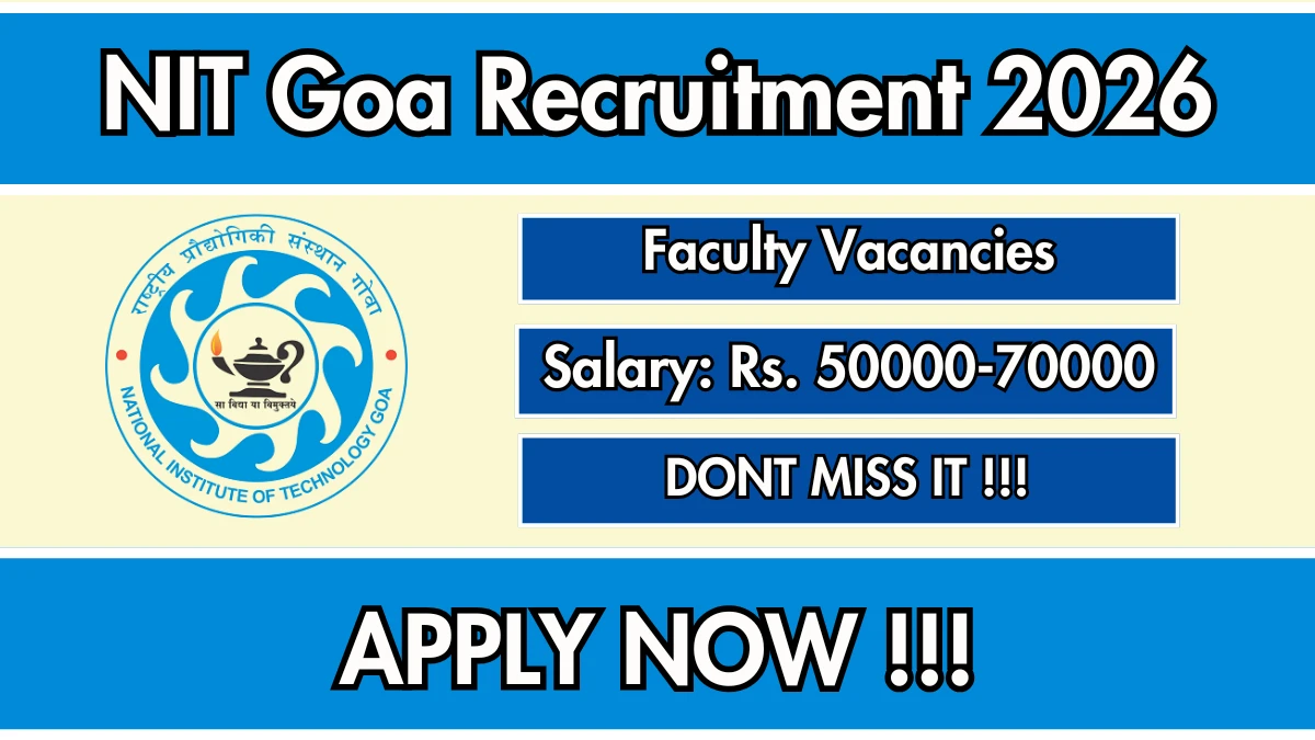 National Institute of Technology Goa (NIT Goa) has released an official notification for the recruitment of 05 Faculty Posts. Interested and eligible candidates can apply Online through the official NIT Goa website. The last date to submit the application form is 04-01-2026. In this article, you’ll find the NIT Goa Faculty Posts recruitment details, including eligibility criteria, age limit, salary structure, selection process, application steps, and direct links to the official notification and Online application form.