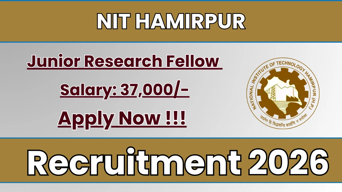 National Institute of Technology Hamirpur (NIT Hamirpur) has released an official notification for the recruitment of 4 Junior Research Fellow (JRF) Posts. Interested and eligible candidates can apply Online through the official NIT Hamirpur website. The last date to submit the application form is 13-03-2026.