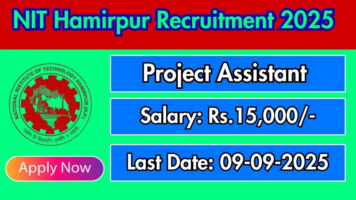 The National Institute of Technology Hamirpur (NIT Hamirpur) Recruitment 2025 for 1 posts of Project Assistant. Candidates with B.Tech/B.E Can Apply Online. The online application closes on 09-09-2025. The candidate shall apply online through NIT Hamirpur website, nith.ac.in.