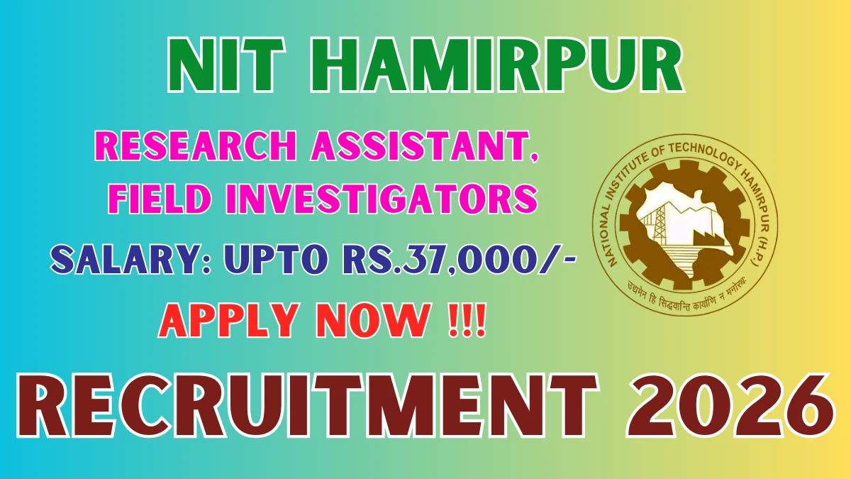 National Institute of Technology Hamirpur (NIT Hamirpur) has released an official notification for the recruitment of 03 Research Assistant, Field Investigators Posts. Interested and eligible candidates can apply Offline through the official NIT Hamirpur website. The last date to submit the application form is 15-02-2026. In this article, you’ll find the NIT Hamirpur Research Assistant, Field Investigators Posts recruitment details, including eligibility criteria, age limit, salary structure, selection process, application steps, and direct links to the official notification and Offline application form.
