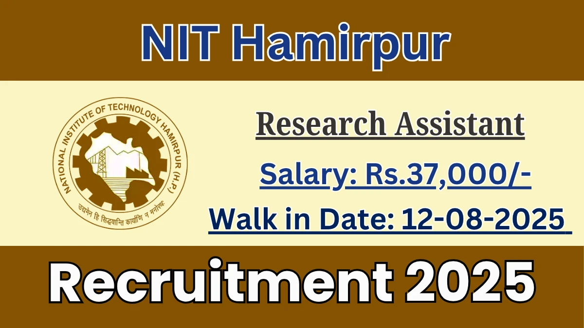 National Institute of Technology Hamirpur (NIT Hamirpur) Recruitment 2025 for 01 posts of Research Assistant. Candidates with M.A Can attend the walkin. The Walk-in on 12-08-2025. For detailed information please visit NIT Hamirpur official website, nith.ac.in.