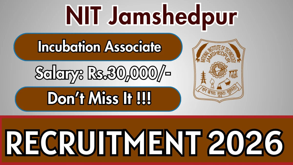 National Institute of Technology Jamshedpur (NIT Jamshedpur) Recruitment 2026 for 01 posts of Incubation Associate. Candidates with Any Bachelors Degree Can attend the walkin. The Walk-in on 13-02-2026. For detailed information please visit NIT Jamshedpur official website, https://nitjsr.ac.in.