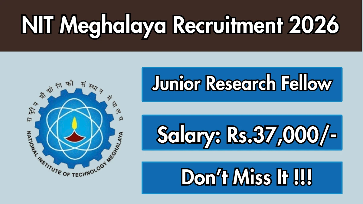 National Institute of Technology Meghalaya (NIT Meghalaya) (NIT Meghalaya) Junior Research Fellow (JRF) Notification 2026 has been released on the official website of NIT Meghalaya. A total of 1 vacancy has been announced through the NIT Meghalaya Junior Research Fellow (JRF) Recruitment 2026.