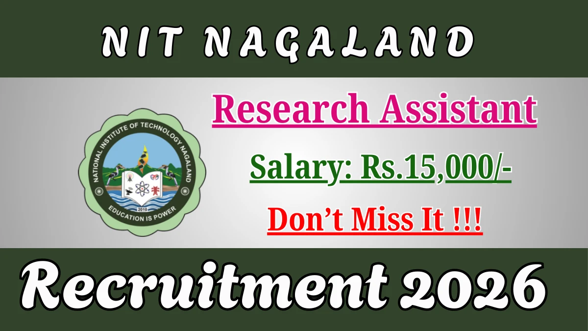 National Institute of Technology Nagaland (NIT Nagaland) has released an official notification for the recruitment of 01 Research Assistant Posts. Interested and eligible candidates can apply Offline through the official NIT Nagaland website. The last date to submit the application form is 09-02-2026. In this article, you’ll find the NIT Nagaland Research Assistant Posts recruitment details, including eligibility criteria, age limit, salary structure, selection process, application steps, and direct links to the official notification and Offline application form.