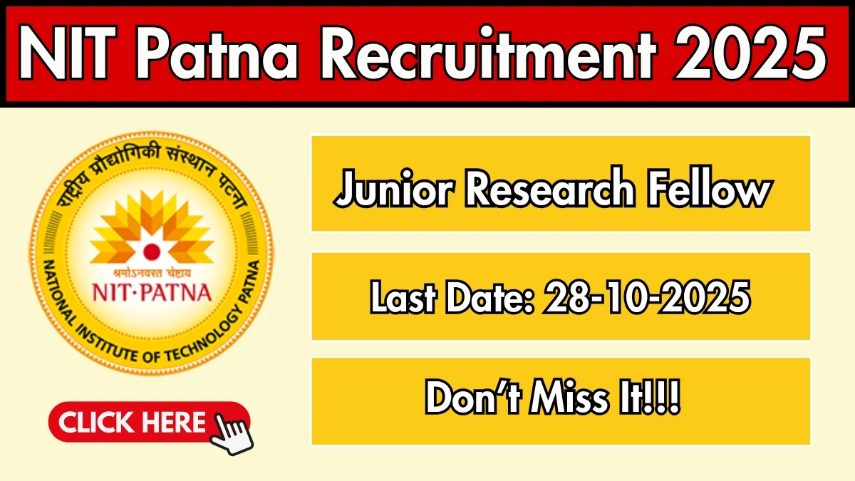 National Institute of Technology Patna (NIT Patna) has released an official notification for the recruitment of 01 Junior Research Fellow Posts. Interested and eligible candidates can apply Offline through the official NIT Patna website. The last date to submit the application form is 28-10-2025. In this article, you’ll find the NIT Patna Junior Research Fellow Posts recruitment details, including eligibility criteria, age limit, salary structure, selection process, application steps, and direct links to the official notification and Offline application form.