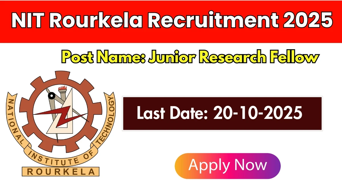 National Institute of Technology Rourkela (NIT Rourkela) has released an official notification for the recruitment of 01 Junior Research Fellow Posts. Interested and eligible candidates can apply Offline through the official NIT Rourkela website. The last date to submit the application form is 20-10-2025. In this article, you’ll find the NIT Rourkela Junior Research Fellow Posts recruitment details, including eligibility criteria, age limit, salary structure, selection process, application steps, and direct links to the official notification and Offline application form.