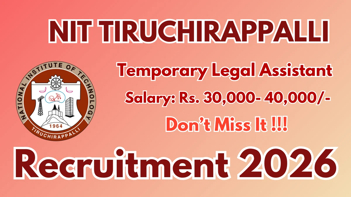 National Institute of Technology Tiruchirappalli (NIT Tiruchirappalli) has released an official notification for the recruitment of 01 Temporary Legal Assistant Posts. Interested and eligible candidates can apply Offline through the official NIT Tiruchirappalli website. The last date to submit the application form is 18-02-2026. In this article, you’ll find the NIT Tiruchirappalli Temporary Legal Assistant Posts recruitment details, including eligibility criteria, age limit, salary structure, selection process, application steps, and direct links to the official notification and Offline application form.