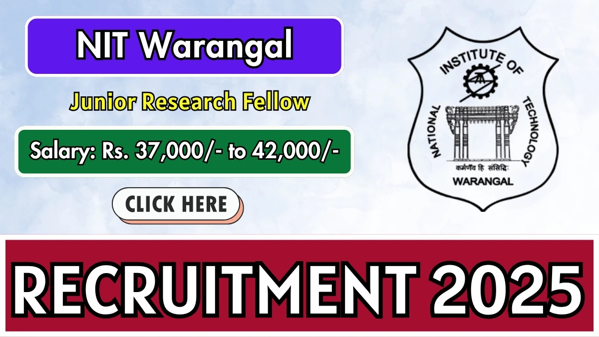 National Institute of Technology Warangal (NIT Warangal) has released an official notification for the recruitment of 01 Junior Research Fellow Posts. Interested and eligible candidates can apply Offline through the official NIT Warangal website. The last date to submit the application form is 15-11-2025. In this article, you’ll find the NIT Warangal Junior Research Fellow Posts recruitment details, including eligibility criteria, age limit, salary structure, selection process, application steps, and direct links to the official notification and Offline application form.
