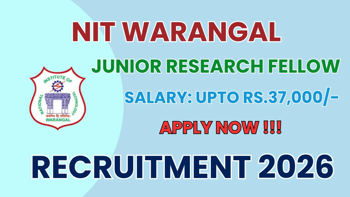National Institute of Technology Warangal (NIT Warangal) has released an official notification for the recruitment of 01 Junior Research Fellow Posts. Interested and eligible candidates can apply Online through the official NIT Warangal website. The last date to submit the application form is 29-01-2026. In this article, you’ll find the NIT Warangal Junior Research Fellow Posts recruitment details, including eligibility criteria, age limit, salary structure, selection process, application steps, and direct links to the official notification and Online application form.