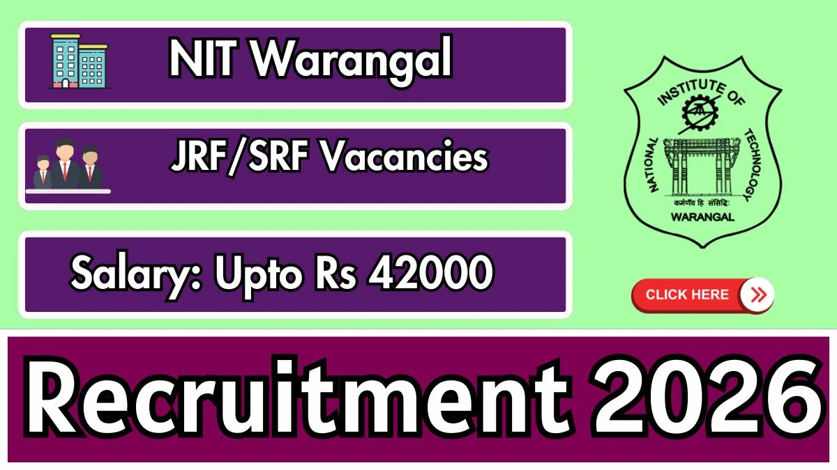 National Institute of Technology Warangal (NIT Warangal) has released an official notification for the recruitment of 01 Junior Research Fellow / Senior Research Fellow Posts. Interested and eligible candidates can apply Online through the official NIT Warangal website. The last date to submit the application form is 21-02-2026. In this article, you’ll find the NIT Warangal Junior Research Fellow / Senior Research Fellow Posts recruitment details, including eligibility criteria, age limit, salary structure, selection process, application steps, and direct links to the official notification and Online application form.