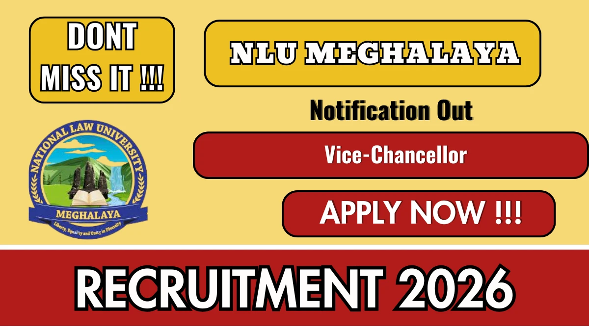 National Law University Meghalaya (NLU Meghalaya) Recruitment 2026 for 1 post of Vice-Chancellor. Candidates with LLB Can Apply Offline. The last date to apply offline is 03-04-2026. The candidate shall apply offline through NLU Meghalaya official website.