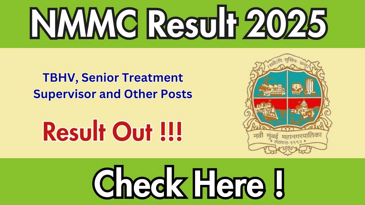 On 15-12-2025, NMMC TBHV, Senior Treatment Supervisor and Other Posts Result 2025 is out! NMMC TBHV, Senior Treatment Supervisor and Other Posts Result 2025 released on nmmc.gov.in. NMMC has conducted the exam for TBHV, Senior Treatment Supervisor and Other Posts in various centers across the country/state. Candidates can check and download their results by visiting the nmmc.gov.in.