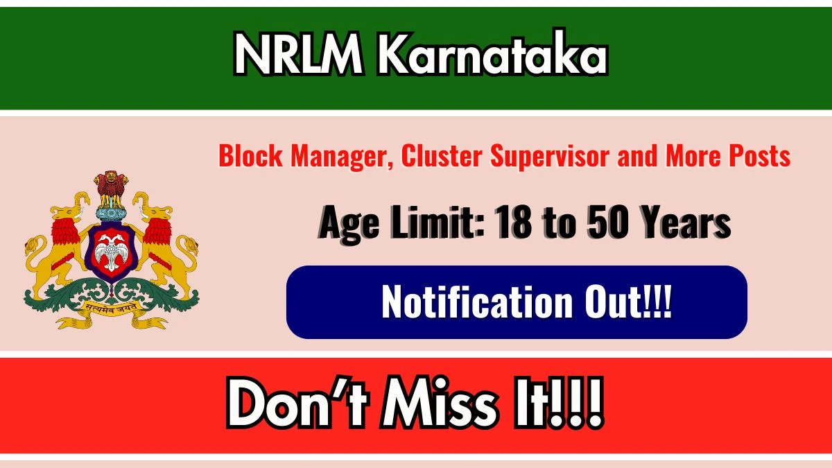 National Rural Livelihoods Mission Karnataka (NRLM Karnataka) Block Manager, Cluster Supervisor & District Program Manager Notification 2026 has been released on 25 March 2026 on the official website. A total of 3 vacancies have been announced through the NRLM Karnataka Recruitment 2026.