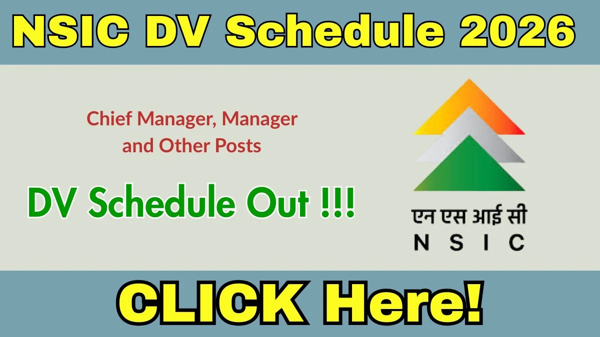 NSIC DV Schedule 2026: The National Small Industries Corporation (NSIC) has officially released the Document Verification (DV) schedule for the Chief Manager, Manager, Deputy Manager and Deputy General Manager recruitment. Candidates who have been shortlisted for document verification can check the complete DV schedule, reporting time, venue details, and required documents list below. The document verification process is scheduled to begin from 28 January 2026.
