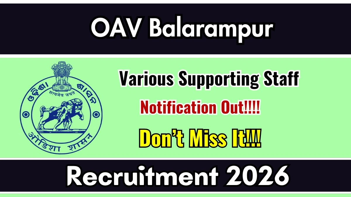 Odisha Adarsha Vidyalaya Balarampur (OAV Balarampur) has released an official notification for the recruitment of 10 Various Supporting Staff Posts. Interested and eligible candidates can apply Offline through the official OAV Balarampur website. The last date to submit the application form is 31-01-2026. In this article, you’ll find the OAV Balarampur Various Supporting Staff Posts recruitment details, including eligibility criteria, age limit, salary structure, selection process, application steps, and direct links to the official notification and Offline application form.