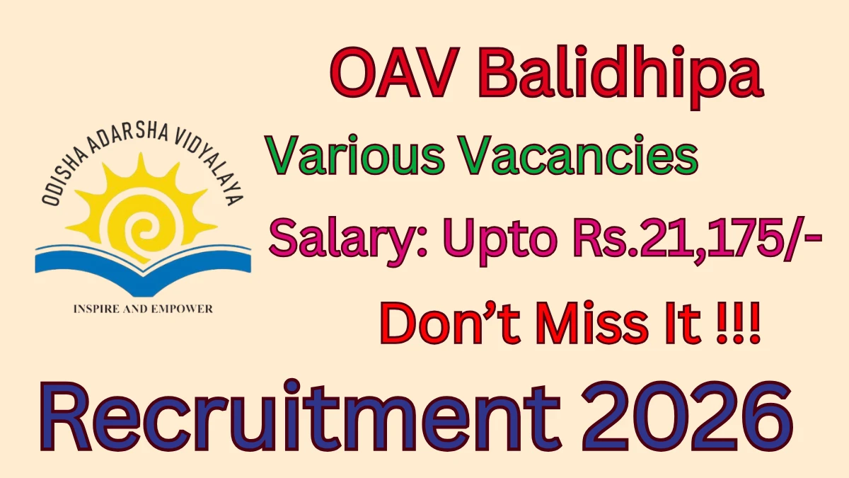 Odisha Adarsha Vidyalaya Balidhipa (OAV Balidhipa) has released an official notification for the recruitment of 05 Warden, Head Cook and More Posts. Interested and eligible candidates can apply Offline through the official OAV Balidhipa website. The last date to submit the application form is 05-03-2026. In this article, you’ll find the OAV Balidhipa Warden, Head Cook and More Posts recruitment details, including eligibility criteria, age limit, salary structure, selection process, application steps, and direct links to the official notification and Offline application form.