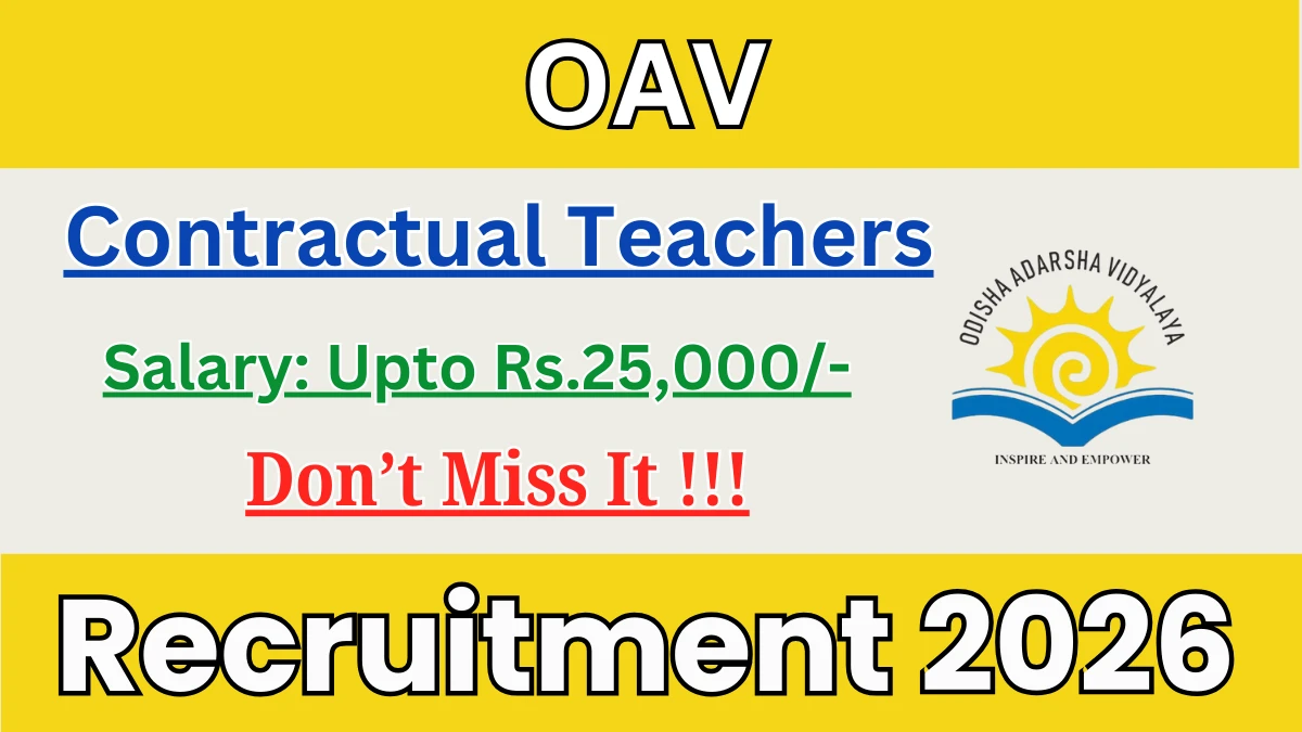 Odisha Adarsha Vidyalaya (OAV) has released an official notification for the recruitment of Contractual Teachers Posts. Interested and eligible candidates can apply Offline through the official OAV website. The last date to submit the application form is 02-03-2026. In this article, you’ll find the OAV Contractual Teachers Posts recruitment details, including eligibility criteria, age limit, salary structure, selection process, application steps, and direct links to the official notification and Offline application form.