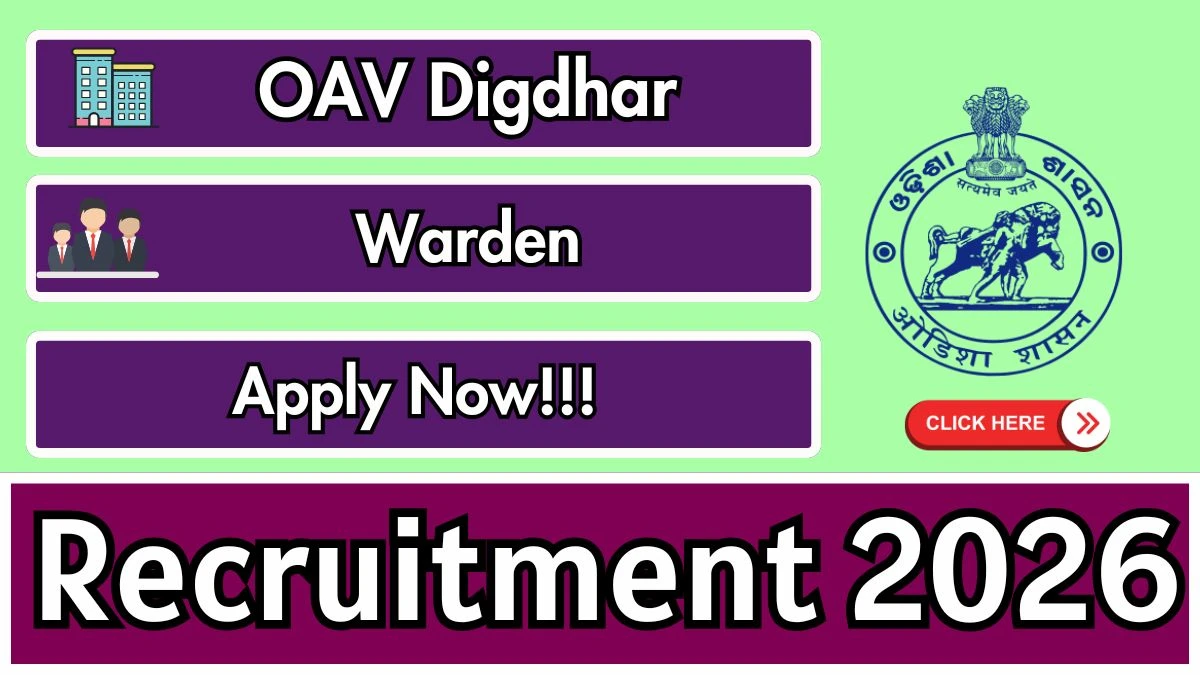 The Odisha Adarsha Vidyalaya Digdhar (OAV Digdhar) Recruitment 2026 for posts of 01 Warden. Candidates with B.A, B.Sc Can Apply Offline. The Offline application opens on 05-01-2026, and closes on 23-01-2026. The candidate shall apply Offline through OAV Digdhar website, mayurbhanj.odisha.gov.in.