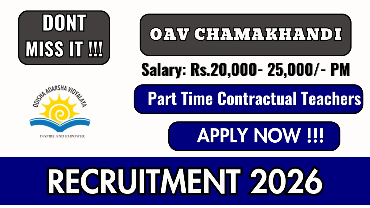 Odisha Adarsha Vidyalaya Chamakhandi (OAV) Recruitment 2026: Odisha Adarsha Vidyalaya Chamakhandi has released the official notification for Part-Time Contractual Teachers posts, inviting applications from eligible candidates. This recruitment provides an excellent opportunity for candidates seeking stable and well-paid education jobs.