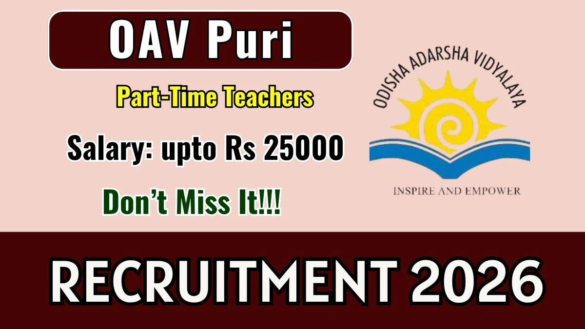 Odisha Adarsha Vidyalaya Puri (OAV Puri) Recruitment 2026: Odisha Adarsha Vidyalaya Puri has released the official notification for Part-Time Teachers posts, inviting applications from eligible candidates. This recruitment provides an excellent opportunity for candidates seeking stable and well-paid education jobs.