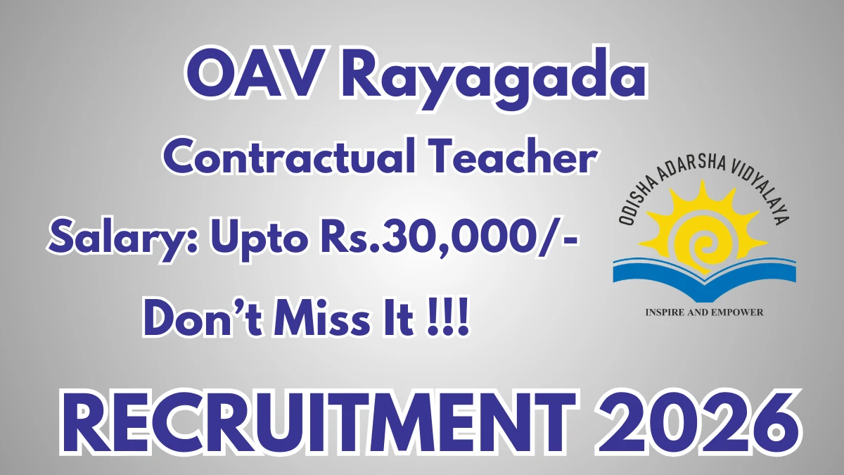 Odisha Adarsha Vidyalayas, Rayagada (OAV Rayagada) has released an official notification for the recruitment of Contractual Teacher Posts. Interested and eligible candidates can apply Offline by sending the application form to the official address. The last date to submit the application is 11-03-2026.
