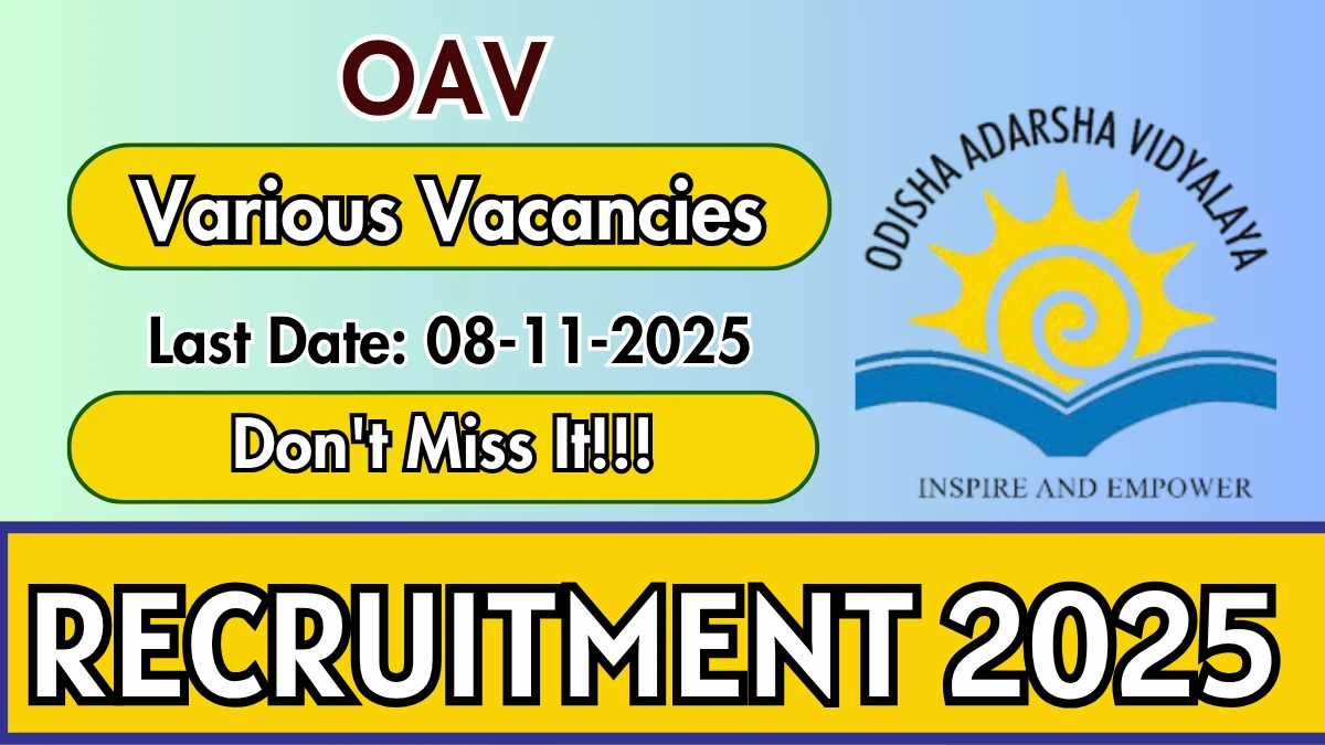 Odisha Adarsha Vidyalaya (OAV) has released an official notification for the recruitment of 05 Warden, Head Cook and More Posts. Interested and eligible candidates can apply Offline through the official OAV website. The last date to submit the application form is 08-11-2025. In this article, you’ll find the OAV Warden, Head Cook and More Posts recruitment details, including eligibility criteria, age limit, salary structure, selection process, application steps, and direct links to the official notification and Offline application form.