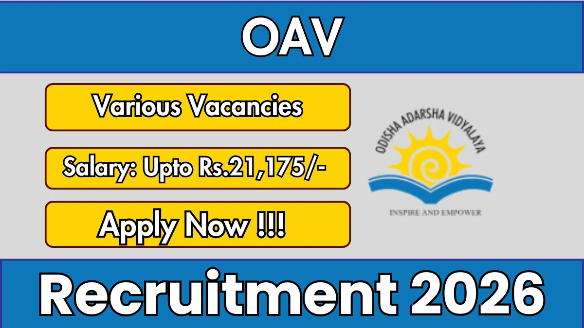 Odisha Adarsha Vidyalaya (OAV) has released an official notification for the recruitment of 05 Warden, Head Cook And More Posts. Interested and eligible candidates can apply Offline through the official OAV website. The last date to submit the application form is 24-01-2026. In this article, you’ll find the OAV Warden, Head Cook And More Posts recruitment details, including eligibility criteria, age limit, salary structure, selection process, application steps, and direct links to the official notification and Offline application form.