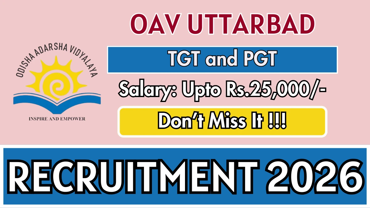 Odisha Adarsha Vidyalaya Uttarbad (OAV Uttarbad) has released an official notification for the recruitment of TGT and PGT Posts. Interested and eligible candidates can apply Offline through the official OAV Uttarbad website. The last date to submit the application form is 02-03-2026. In this article, you’ll find the OAV Uttarbad TGT and PGT Posts recruitment details, including eligibility criteria, age limit, salary structure, selection process, application steps, and direct links to the official notification and Offline application form.