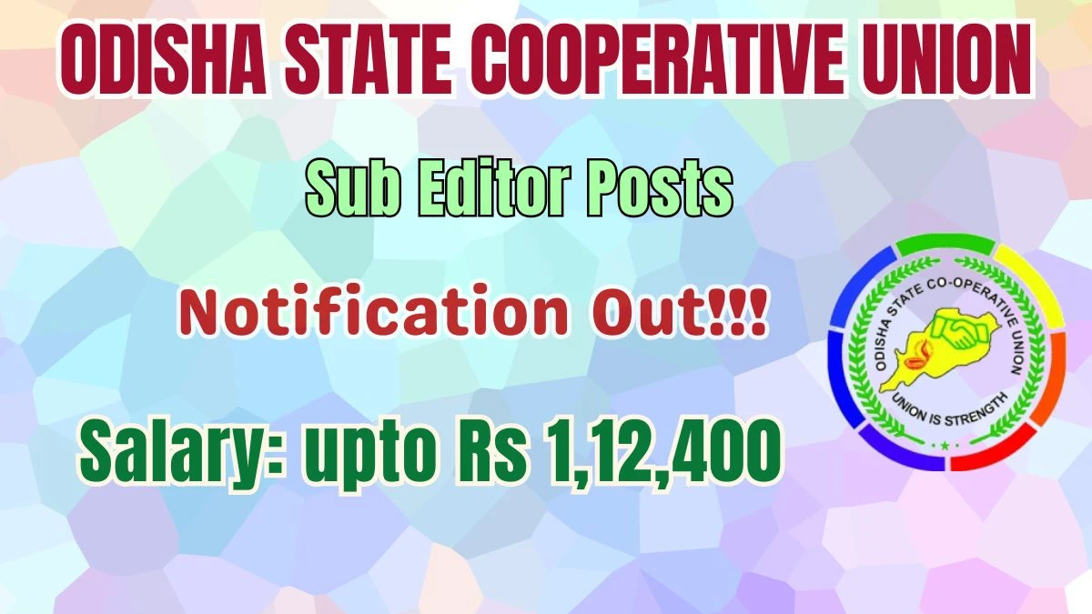 Odisha State Cooperative Union Sub Editor Recruitment 2026 Vacancy Details |
