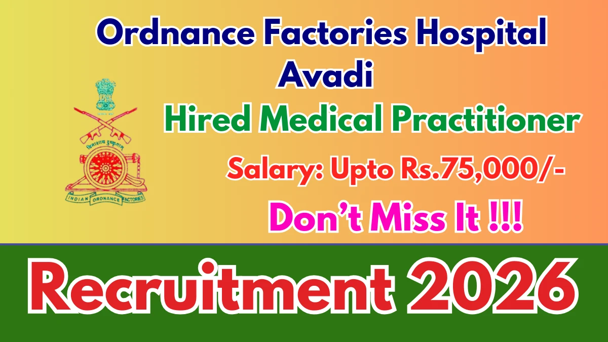 Ordnance Factories Hospital Avadi Recruitment 2026 for 02 posts of Hired Medical Practitioner. Candidates with MBBS Can attend the walkin. The Walk-in on 09-02-2026. For detailed information please visit Ordnance Factories Hospital Avadi official website, https://ddpdoo.gov.in.