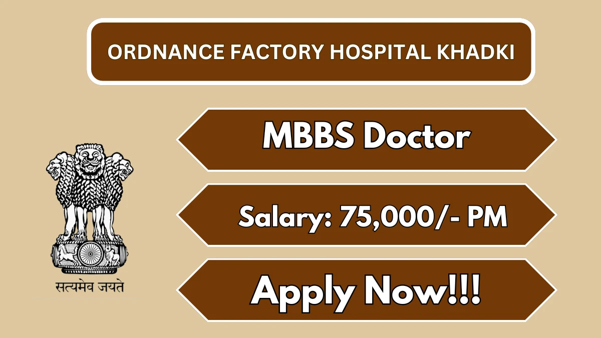 Candidates who have completed an MBBS degree from an MCI recognized medical college/university and are registered medical practitioners are eligible to apply for these MBBS Doctor vacancies. The walk-in application process for Ordnance Factory Hospital Khadki MBBS Doctor Recruitment 2026 will be conducted on 11 May 2026.